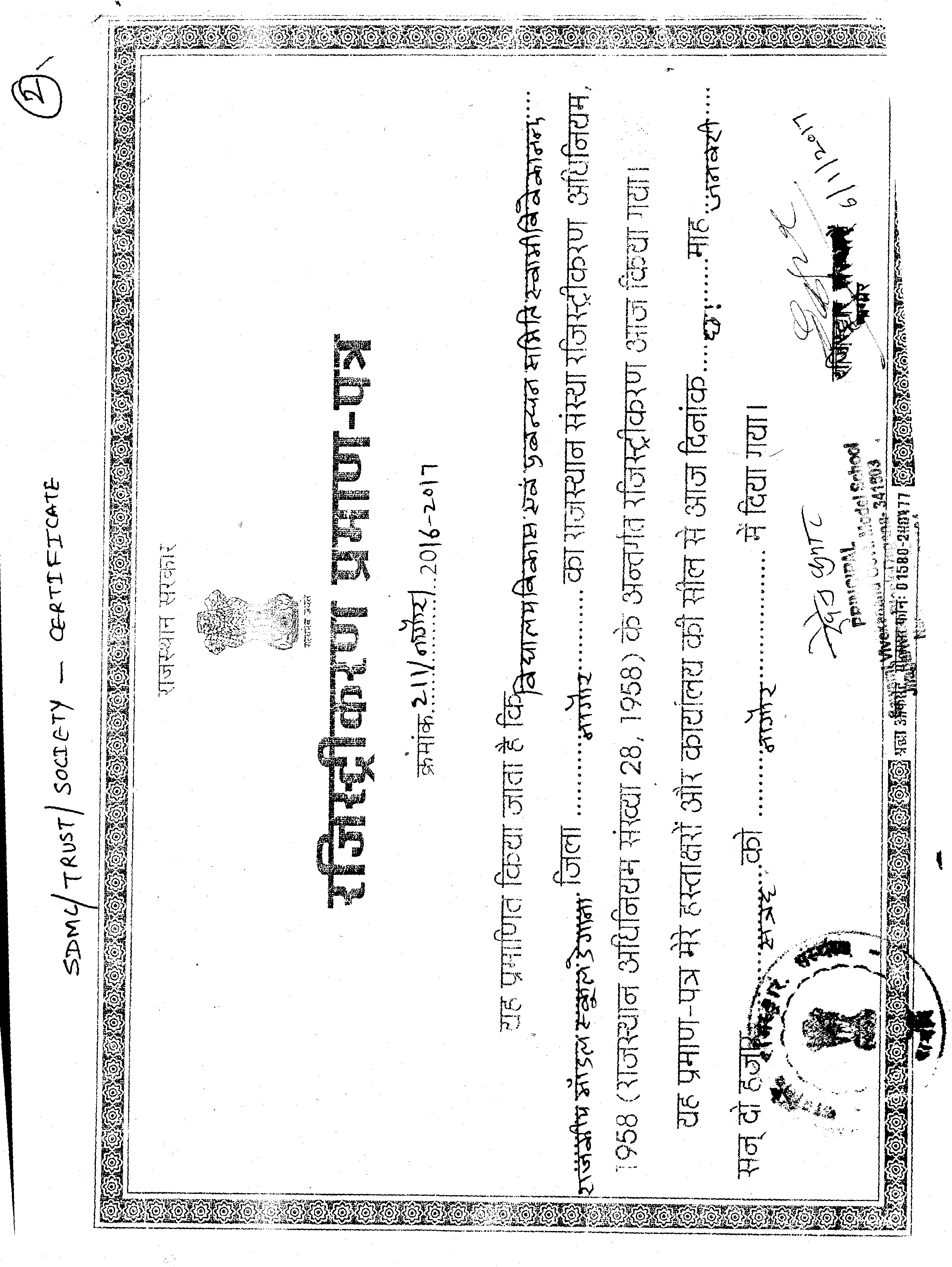 COPY OF THE DEO CERTIFICATE SUBMITTED BY THE SCHOOL FOR AFFILIATION/UPGRADATION/EXTENSION OF AFFILIATION OR SELF CERTIFICATION BY SCHOOL
